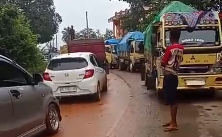 Video yang beredar di media sosial memperlihatkan antrean kendaraan yang terhenti akibat lalu lintas yang tersendat.
