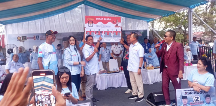 Dalam kesempatan tersebut, ASR-Hugua mensimulasikan pencoblosan surat suara sambil mengajak warga Kendari untuk memilih nomor urut dua dalam pemilihan gubernur mendatang.