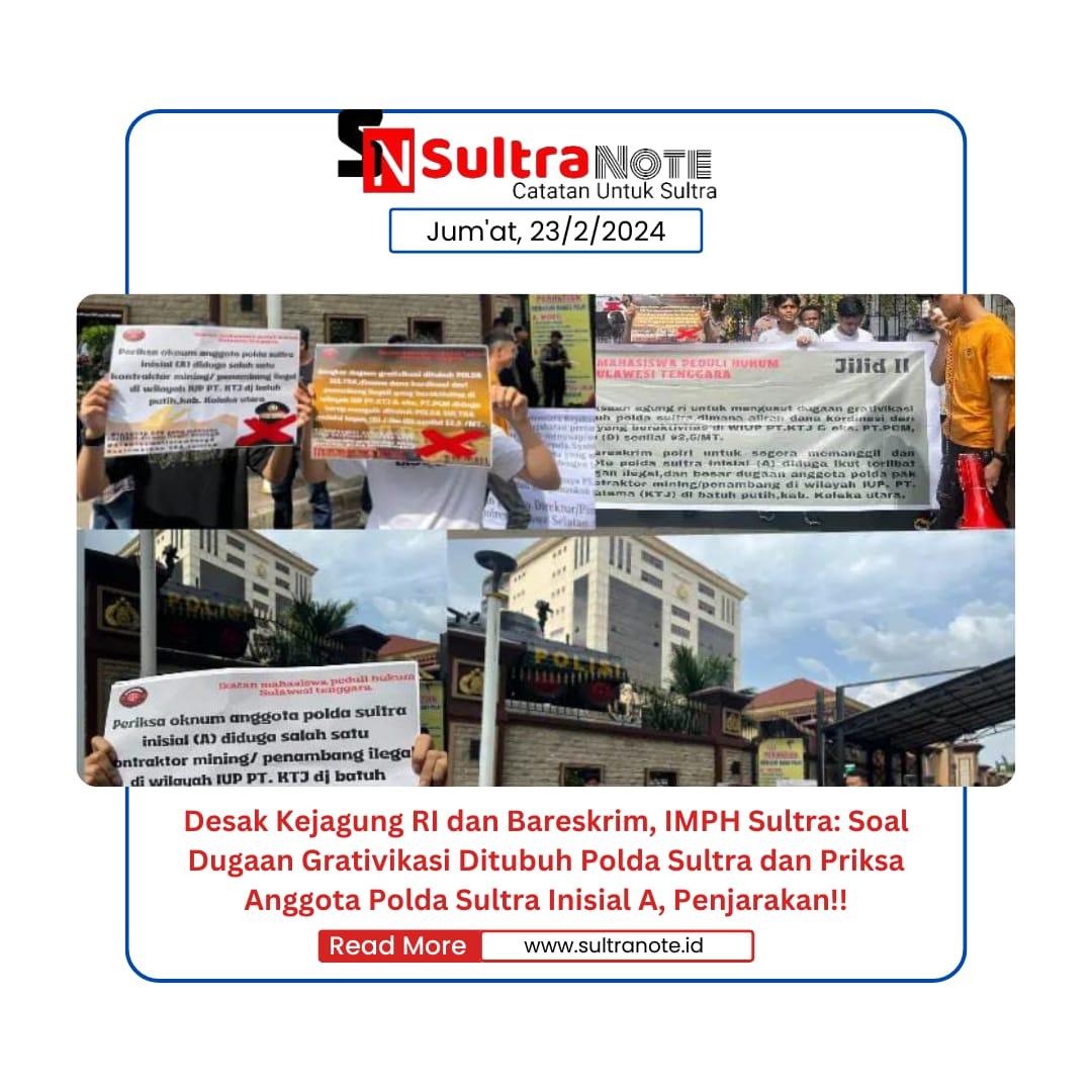 Desak Kejagung RI dan Bareskrim, IMPH Sultra: Soal Dugaan Grativikasi Ditubuh Polda Sultra dan Priksa Anggota Polda Sultra Inisial A, Penjarakan!!