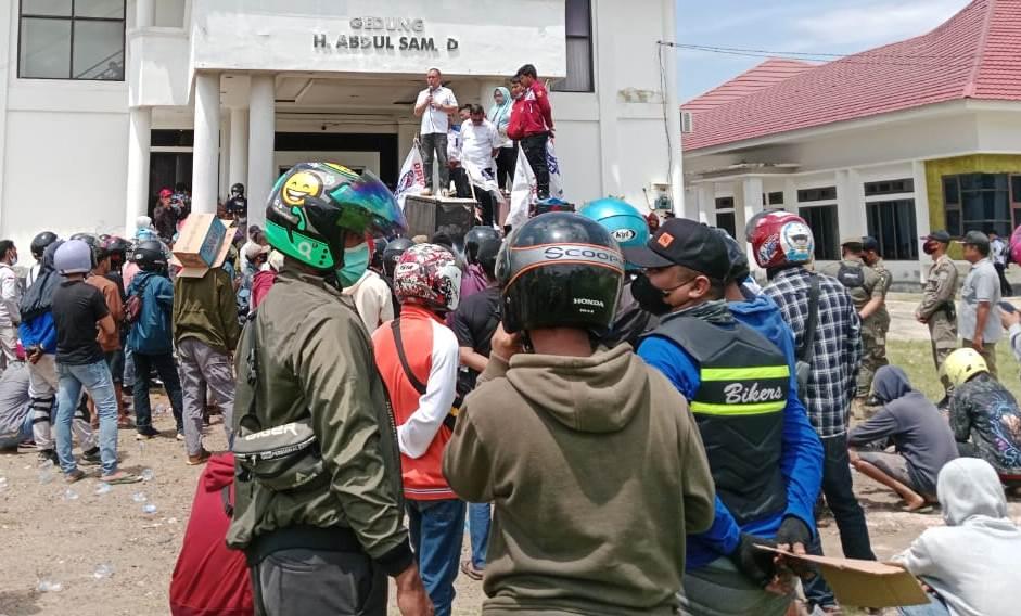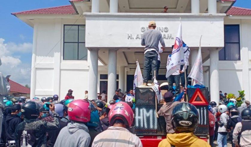 Demo ratusan massa yang tergabung dalam Serikat Pekerja Serikat Buruh (SPSK) dan Kesatuan Serikat Pekerja Nasional (KSPN) yang bekerja di PT VDNI dan PT OSS Kabupaten Konawe, (DPRD) Konawe, Rabu, (18/1/2023).