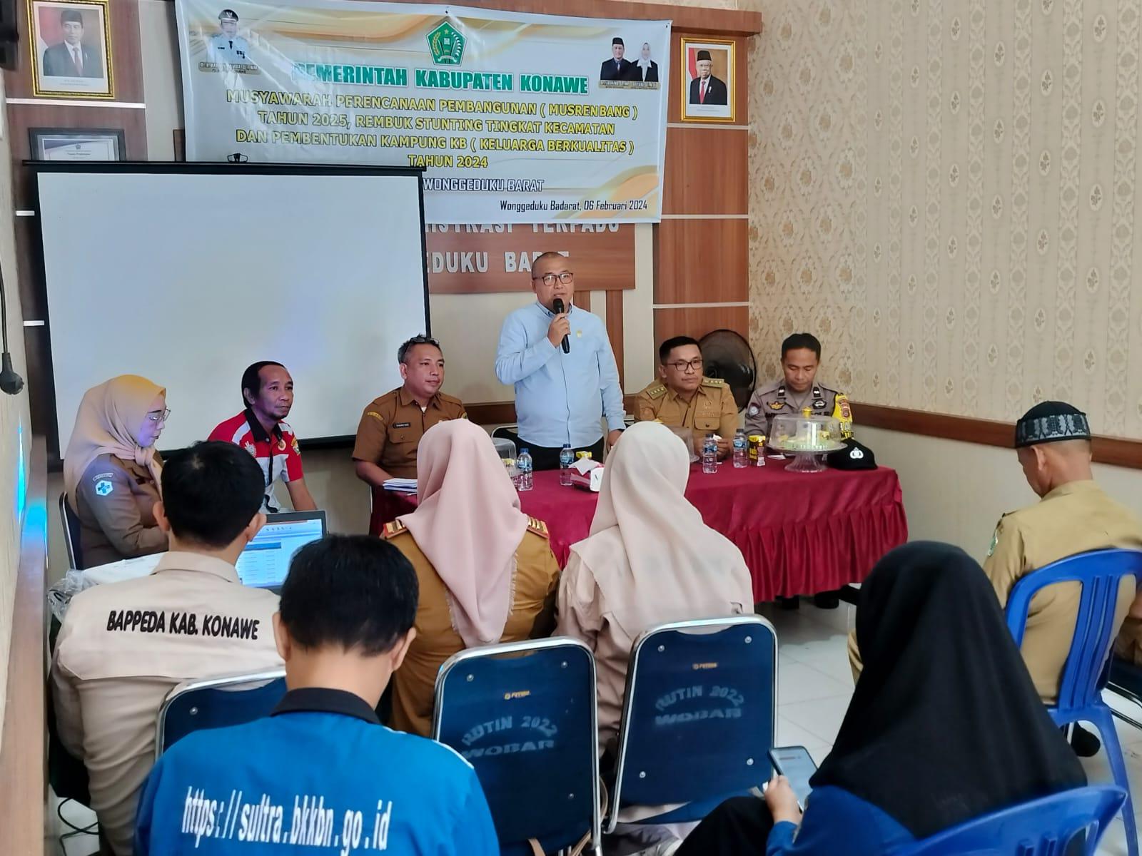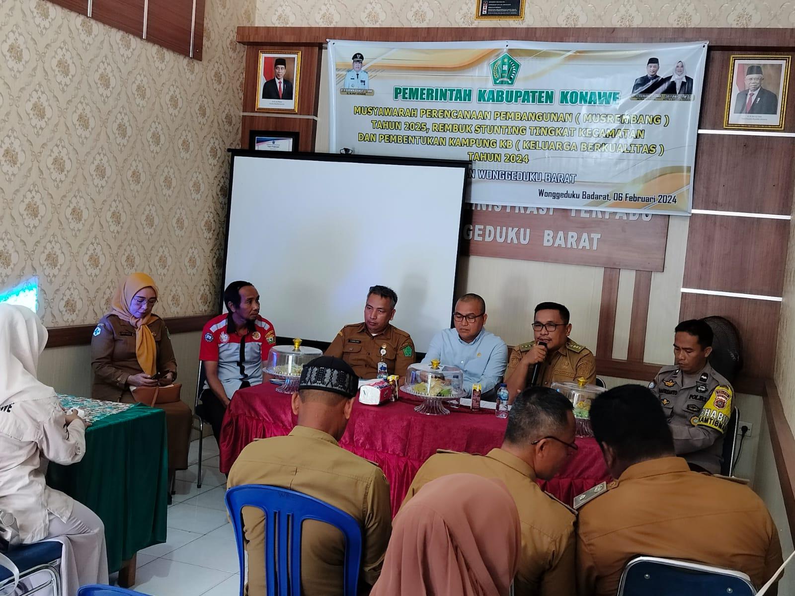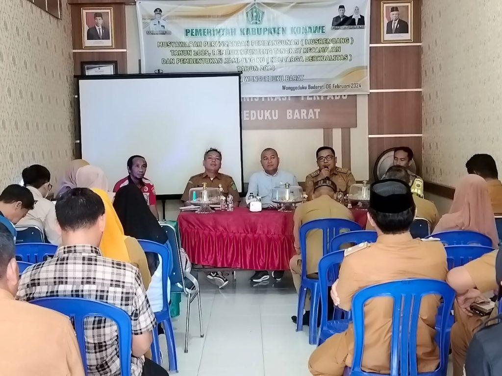 Ketua DPRD Konawe, Dr. Ardin, menghadiri Musyawarah Perencanaan Pembangunan (Musrenbang) di Kecamatan Wonggeduku Barat, Kabupaten Konawe, Sulawesi Tenggara, Selasa (6/2/2024). Musrenbang ini bertujuan untuk menyusun Rencana Kerja Pemerintah Daerah (RKPD) tahun 2025.