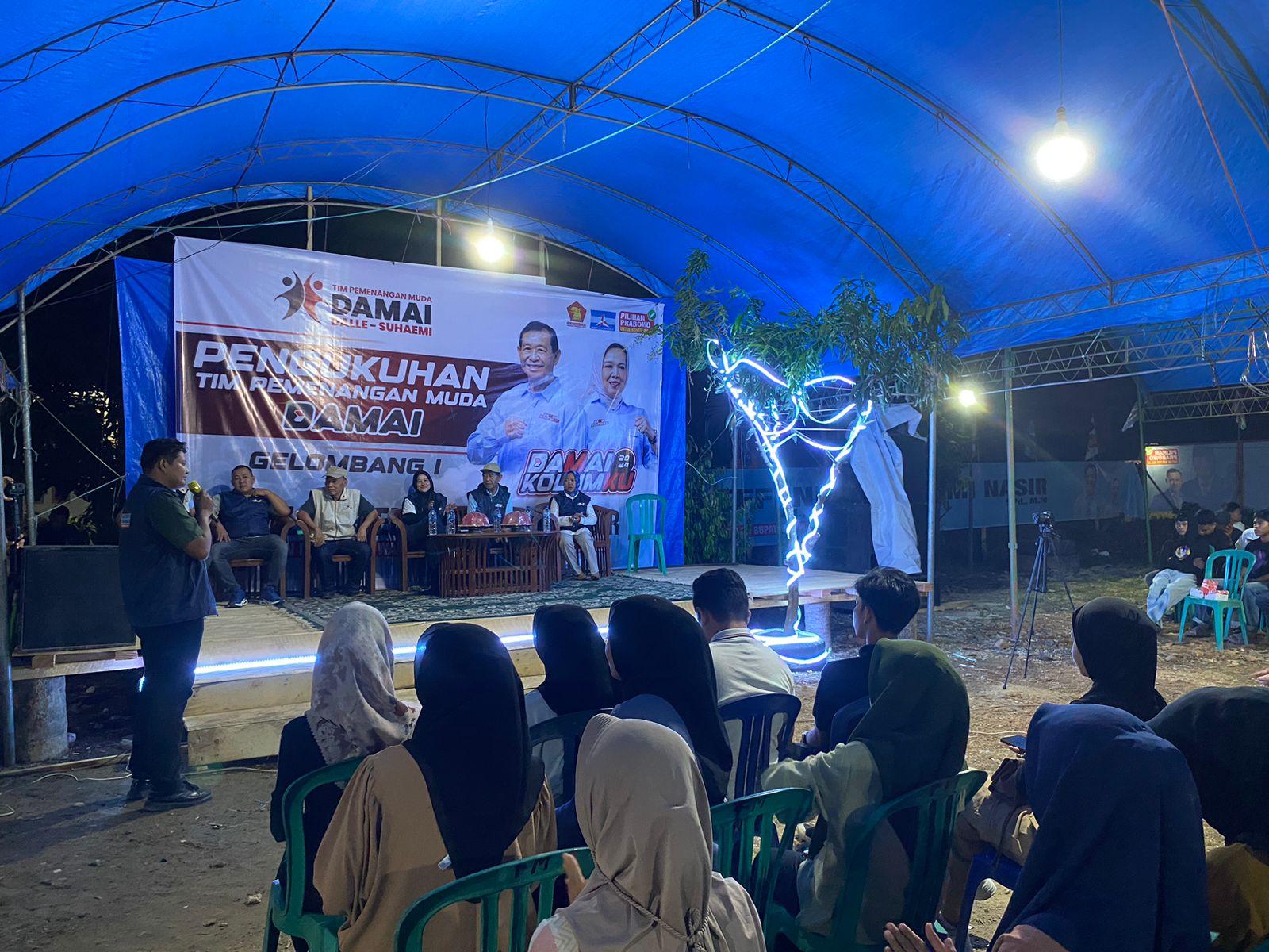 Koltim – Pasangan Calon Bupati Kolaka Timur, Dalle-Suhaemi (DAMAI), mengukuhkan Tim Pemenangan Muda Damai Gelombang 1 di Desa Simbune, Kecamatan Tirawuta, Kabupaten Kolaka Timur, Minggu (22/9/2024).