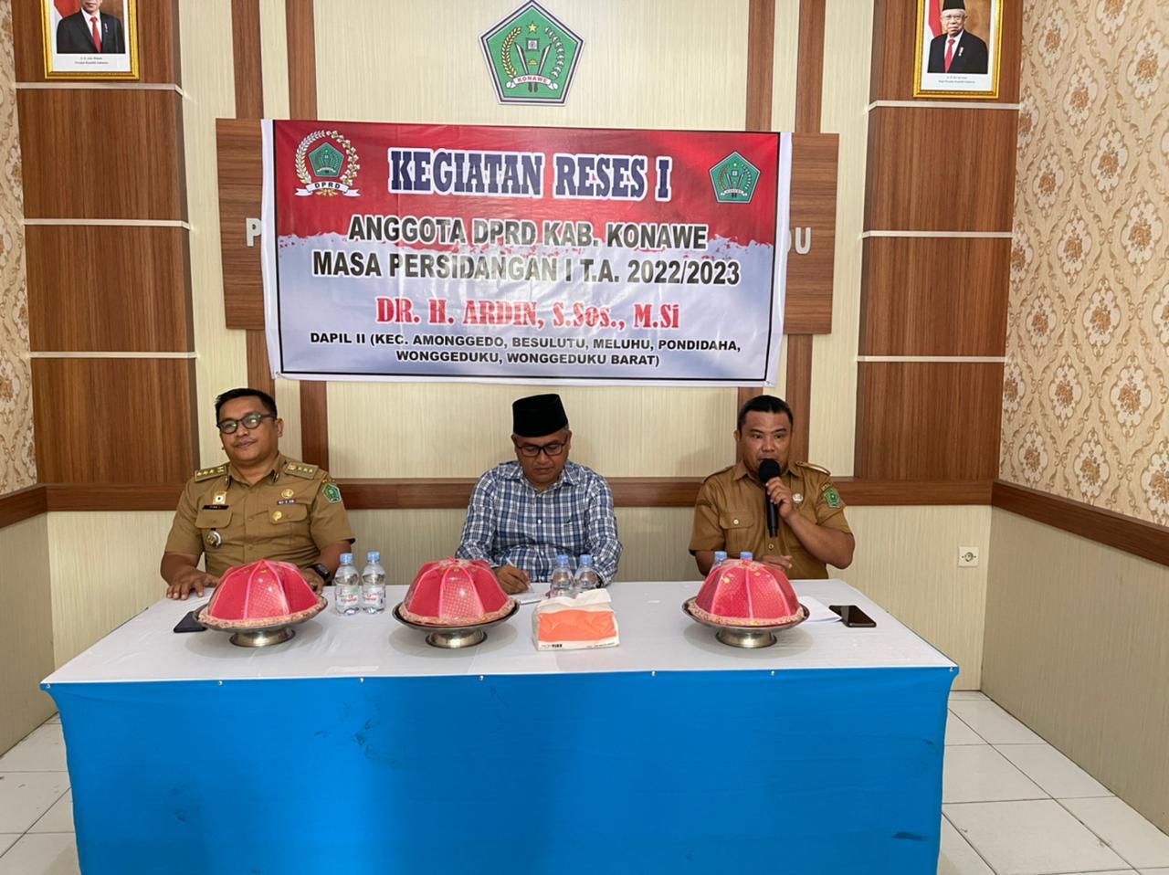 Ketua DPRD Konawe, Dr. Ardin lakukan reses di Kecamatan Wonggeduku Barat di hadiri Camat Wobar Tira Liambo.