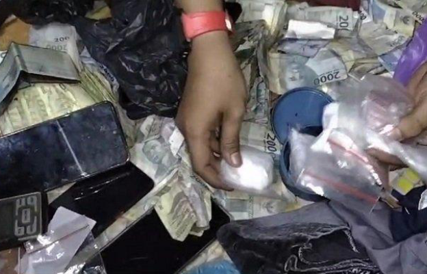 5 sachet sabu terbuat ditemukan di dalam lemari TV, uang tunai Rp11,6 juta ditemukan dalam laci lemari kamar tengah.