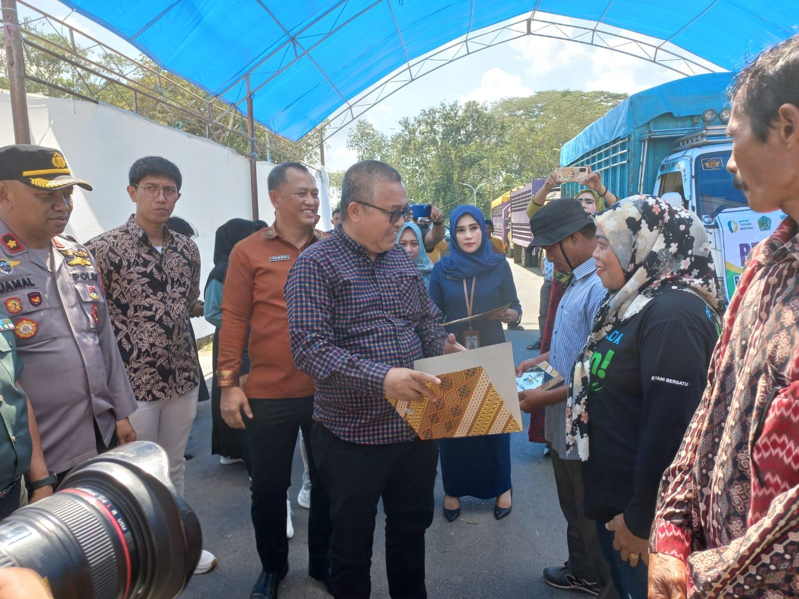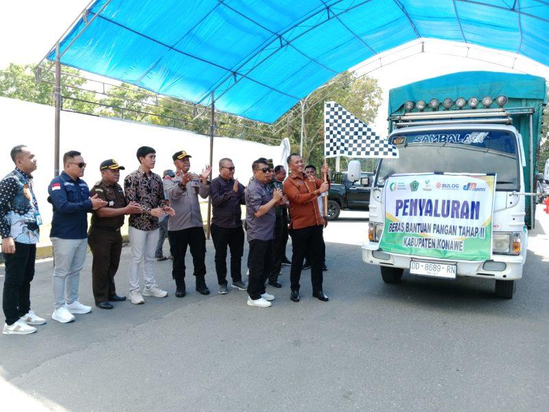 Sekda Konawe, Ferdinan Sapaan saat melepas bantuan pangan tahap II Kabupaten Konawe