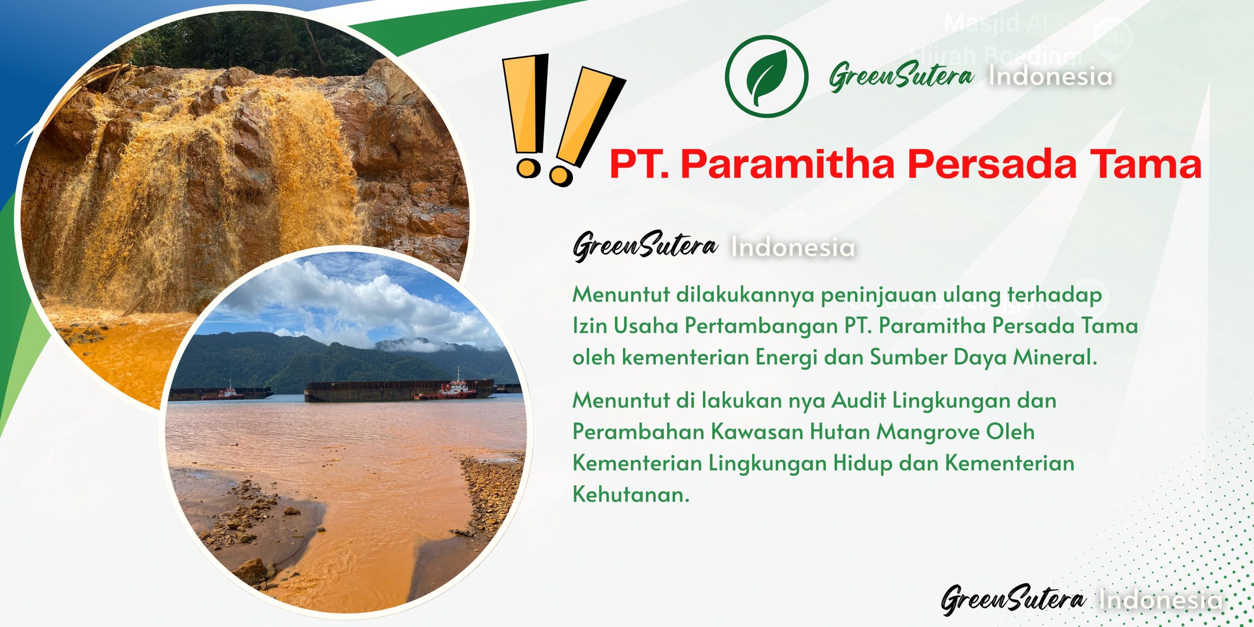 Untuk Itu, pihaknya meminta pemerintah meninjau ulang izin pertambangan yang diberikan kepada PT Paramitha Persada Tama. Melakukan audit lingkungan independen terhadap dampak operasional tambang.