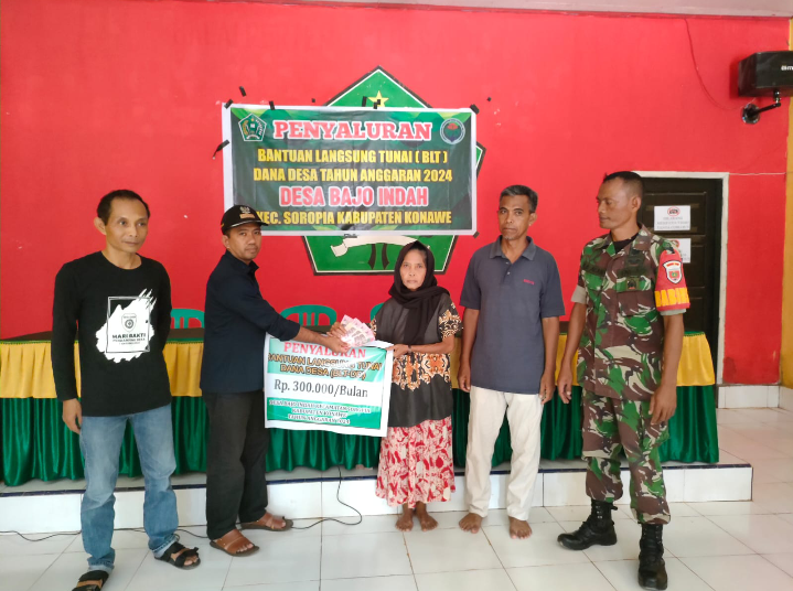 KONAWE – Bertempat di balai desa Bajo Indah, Kecamatan Soropia, Kabupaten Konawe, pemerintah Desa Bajo Indah menyalurkan Bantuan Langsung Tunai (BLT) Dana Desa tahun anggaran 2024. Jum’at (22/3/2024)