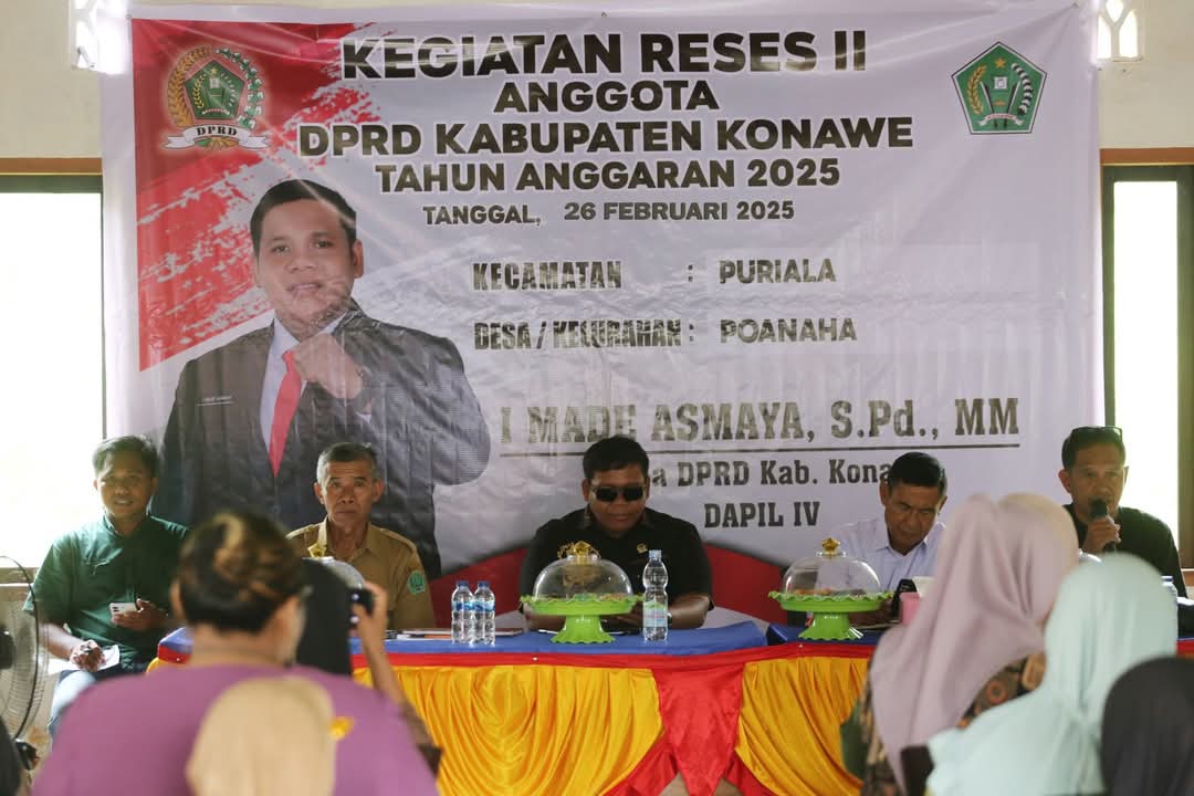 KONAWE – Ketua Dewan Perwakilan Rakyat Daerah (DPRD) Konawe, I Made Asmaya, S.Pd, MM, kembali melaksanakan Reses II Tahun 2025 di Desa Poanaha, Kecamatan Puriala, Rabu, 26 Februari 2025.