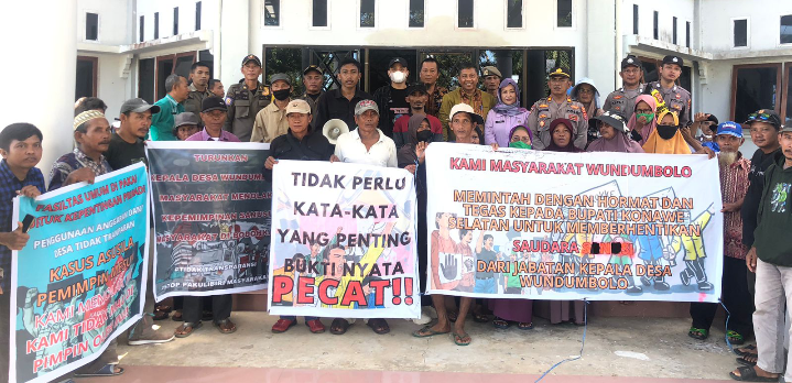 Sementara itu kordinator lapangan, Muhammad Ilham Darsono menyampaikan, aksi ini buntut kekesalan masyarakat terhadap Kepala Desa Wundumbolo inisial S, yang diduga melakukan tindakan asusila kepada aparat desa serta adanya indikasi korupsi selama menjabat Kepala Desa Wundumbolo.
