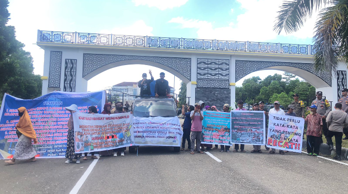 KONSEL – Puluhan masyarakat yang tergabung dalam aliansi masyarakat Wundumbolo menggugat menggelar aksi di Kantor Dinas Pemberdayaan Masyarakat dan Desa (DPMD) Konawe Selatan, depan Kantor Bupati dan berlanjut ke kantor Dewan Perwakilan Rakyat Daerah (DPRD), Kamis (13/6/2024).