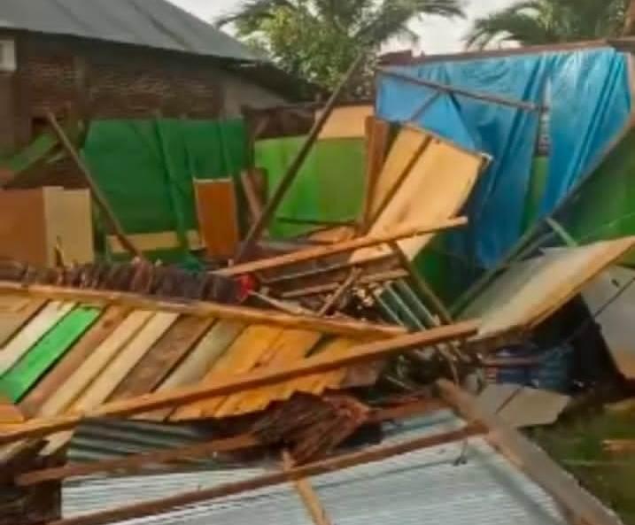 Sama halnya yang terjadi di Desa Tanggodipo kecamatan Uepay, tiga rumah warga mengalami kerusakan akibat angin kencang disertai hujan.