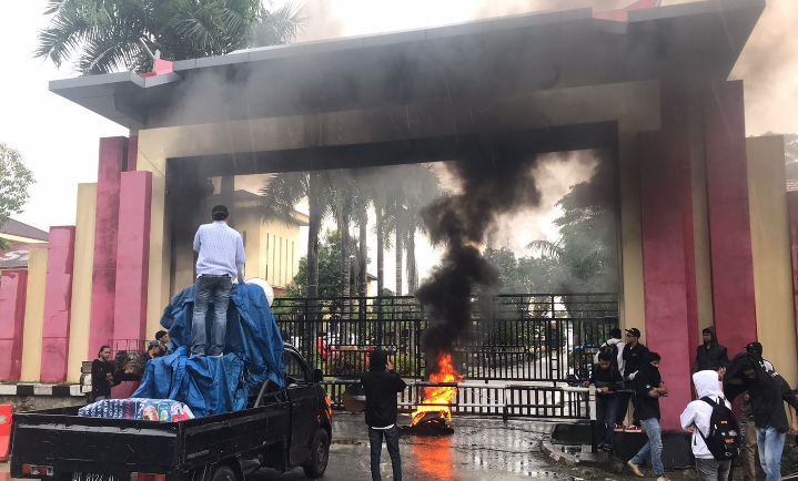 KENDARI – Puluhan masa aksi yang tergabung dalam Grassroots Action Institute (GAT) menggelar aksi unjuk rasa di depan Kepolisian Daerah (Polda) Sulawesi Tenggara (Sutra).